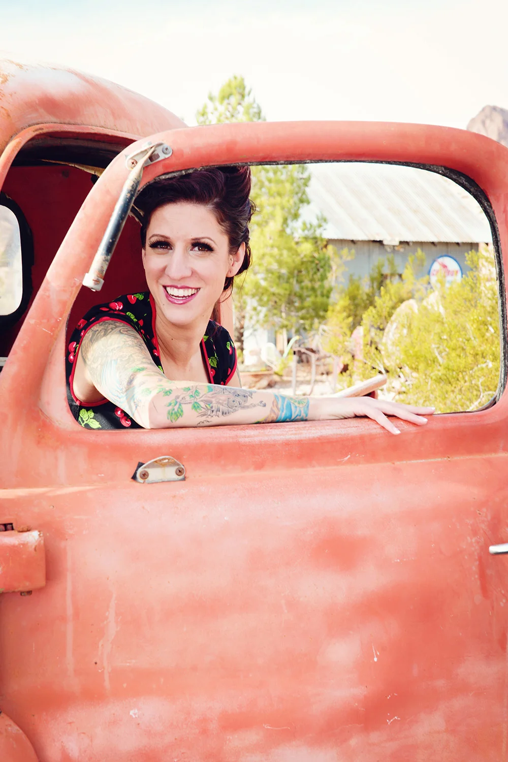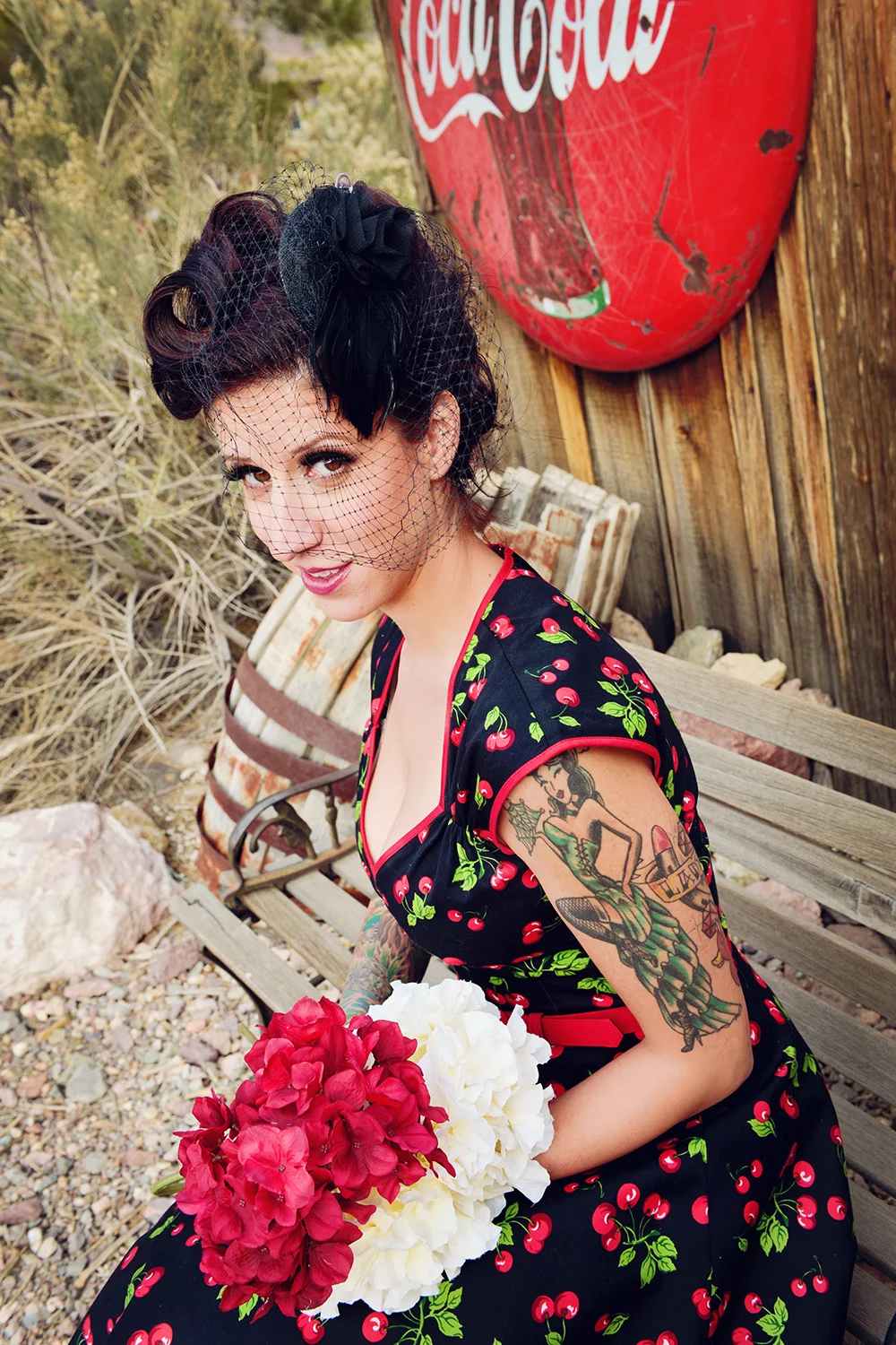pure perfection. Shoshanna brought this cherry dress, veil, heels and had gorgeous tattoos to add to this look. YES PLEASE! Hair and Makeup by Missy you have to check out her work! This location was so much fun!