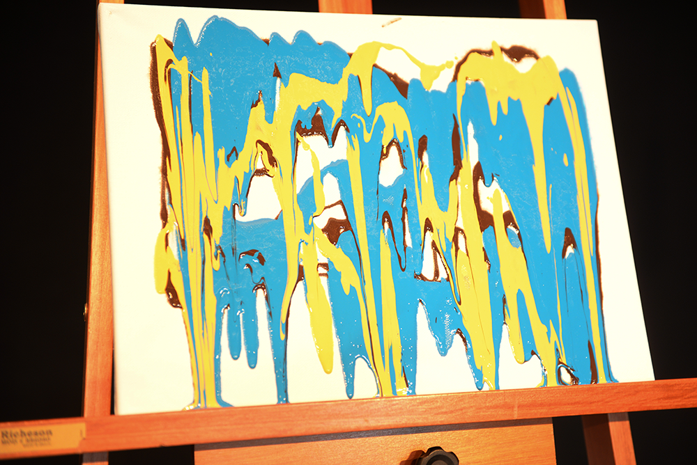 i have never seen the unity painting they did, and i think it's such a neat idea! so take note! instead of the unity candle, the pastor started off by painting a little on a canvas, representing God in their marriage. then each of them took a turn to add to the canvas. it showed how many lines intertwined and but there were still independent. i thought it was such a special way to represent becoming one.