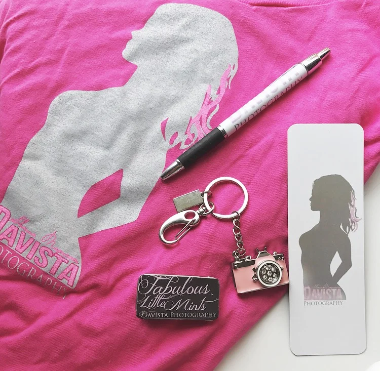 If you're still reading, yeah we've come to the giveaway! This year I wanted it to be more than a random gift, I wanted it to share my brand so this year I'm giving away a Davista pink shirt (small-xl available MEN: i have a black tee instead for you) a 15G pink camera jump drive, bookmark, pen, and my fabulous little mints. A little Davista Photography feel for you!