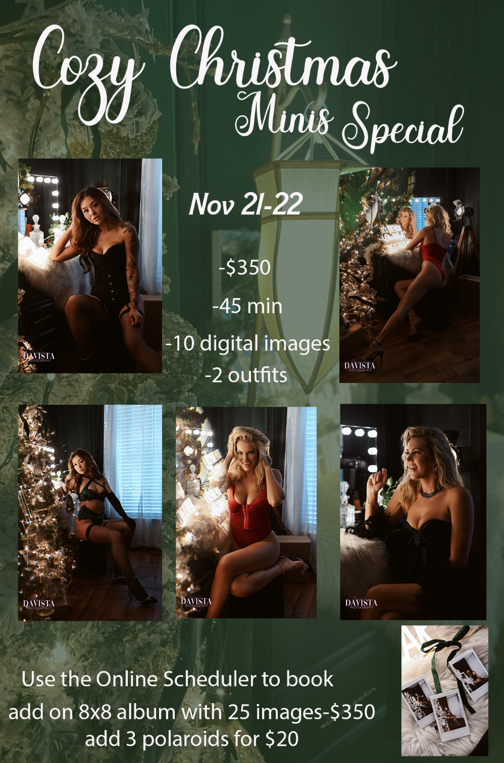 for November 21-22nd ONLY book a 30 minute boudoir mini at $250- perfect gift for you or him and get all images in time to still order a few prints or an album too!