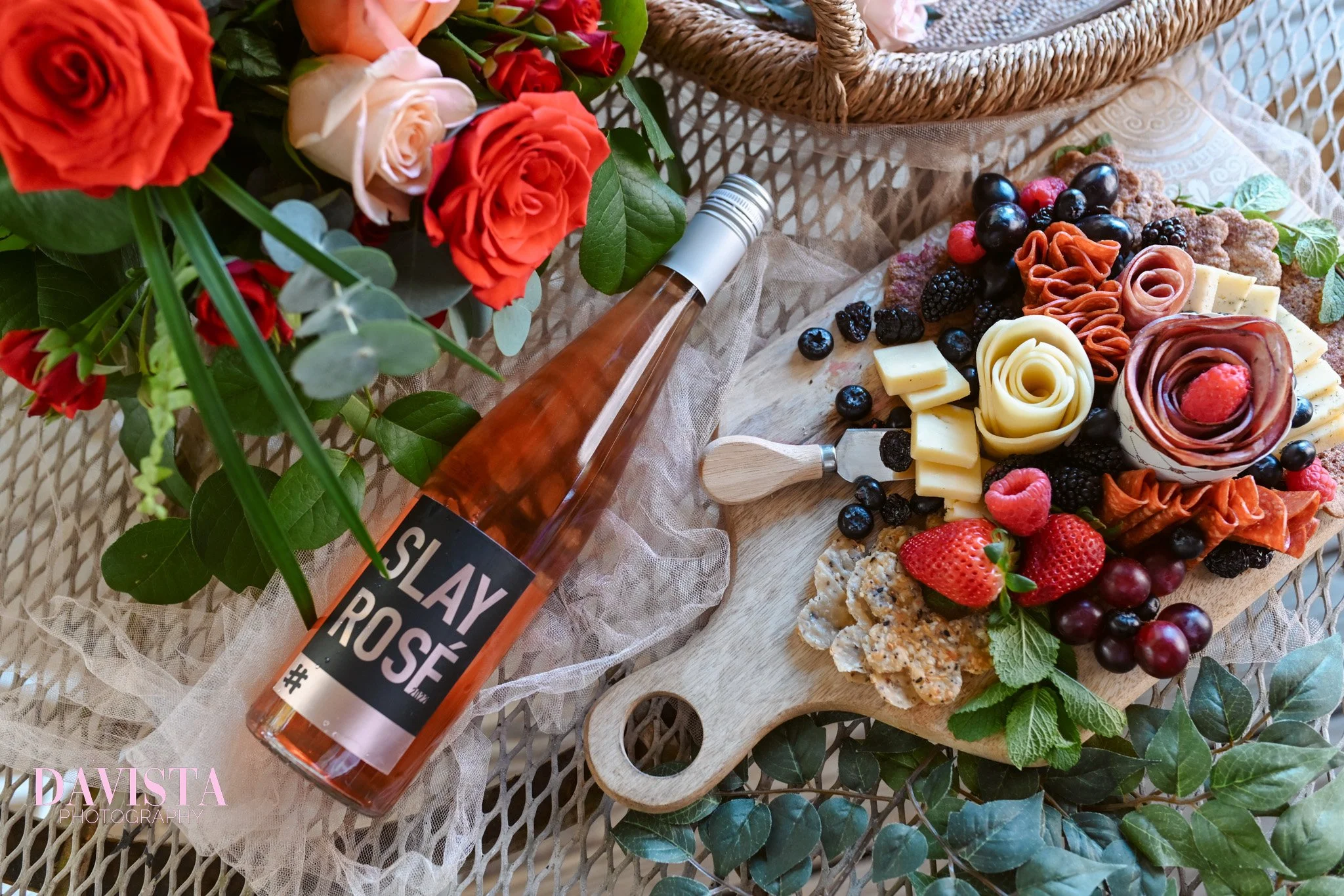 Carmen organized the whole shoot and we shot at Elegance on the Bayou in FWB with the beautiful greenery and patio. The model Jessie also supplied us with her very own Slay Rose! we had Charcuterie by Shelli which we indulged in, and the picnic and decor was from the fabulous Amy of Enchanting Picnic Company. The bouquet of flowers were provided by Bella Flora 30A Hair and makeup by the fabulous Myah Glam Co