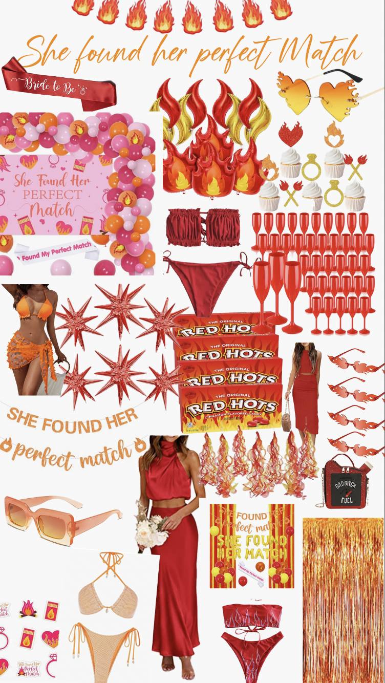 fire inspired favors: I found some cute flame sunglasses, fuel purse, adorable swimsuits you could match, red champagne flutes and more!